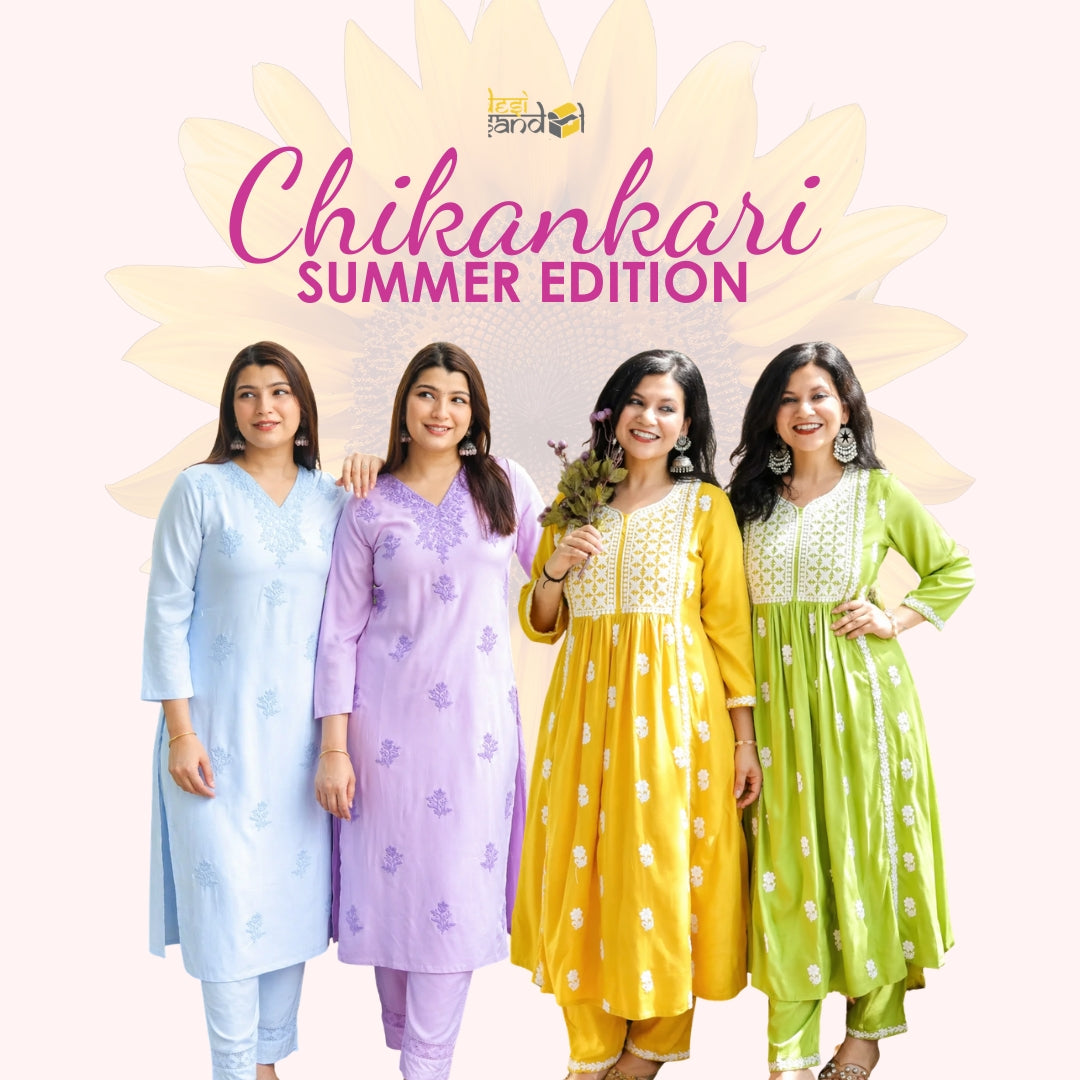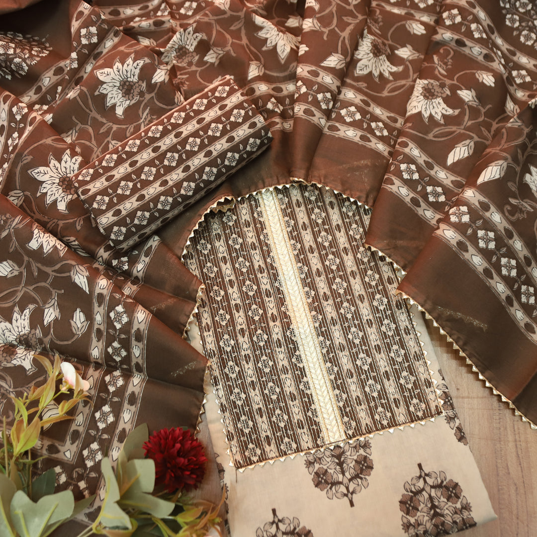 Elisha Sand Tan Kantha Mul Chanderi 3 Piece Set