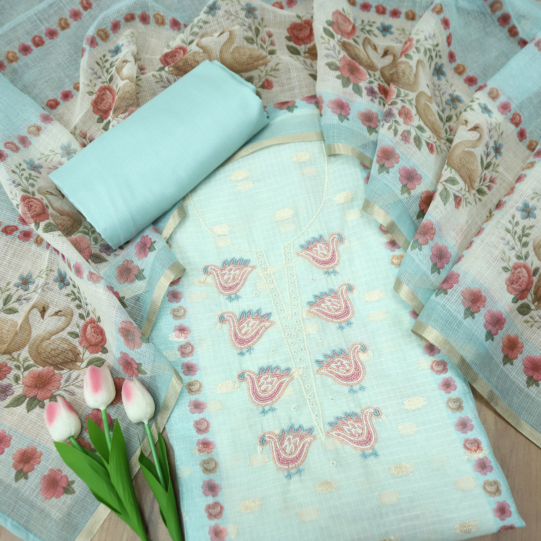 Bijuria Beige with Blue All Over Thread Weaved Work South Cotton Suit Set