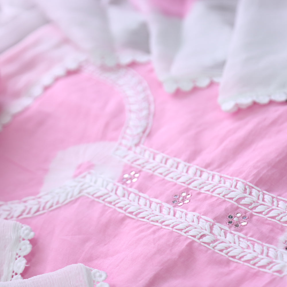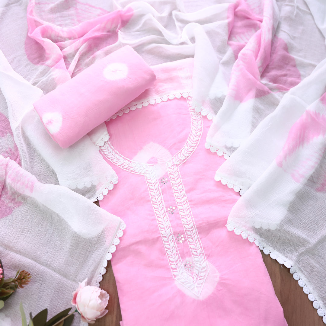 Nurvi Blossom Thread Embroidered with Patra in Bandhej Work Cotton Suit Set
