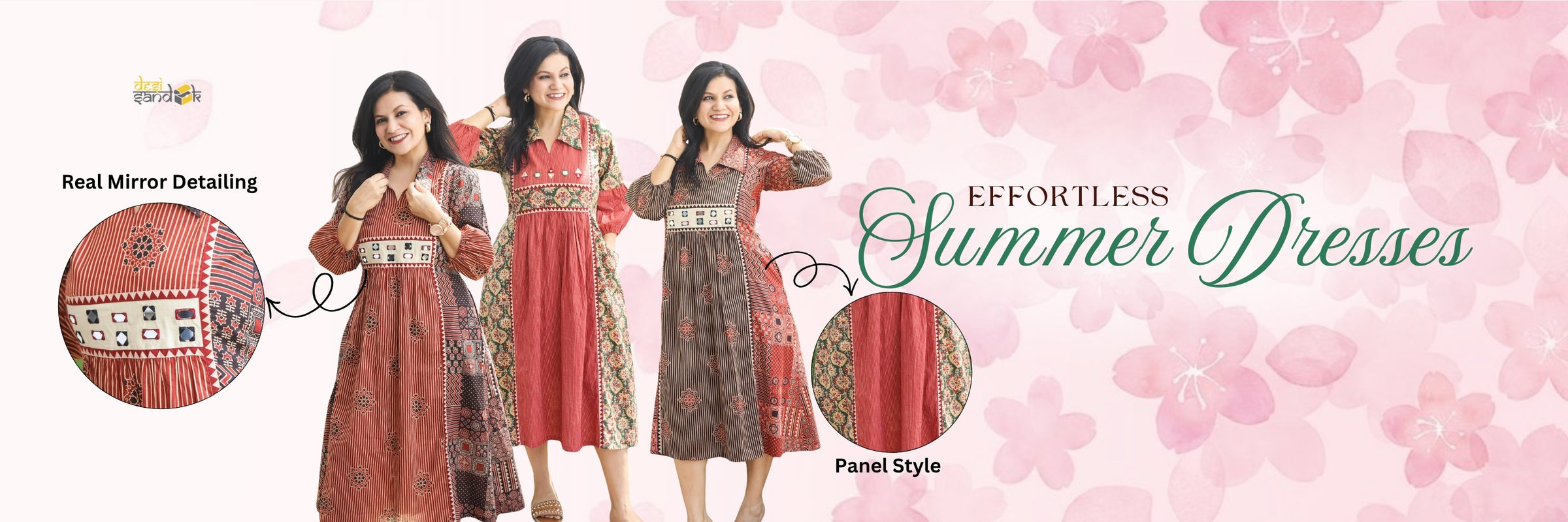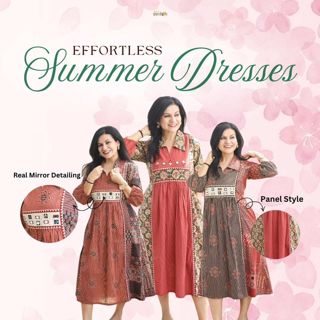 Kiara Beige with Black Kutch Mirror Work Yoke in Ajrak Printed Cotton Kurti