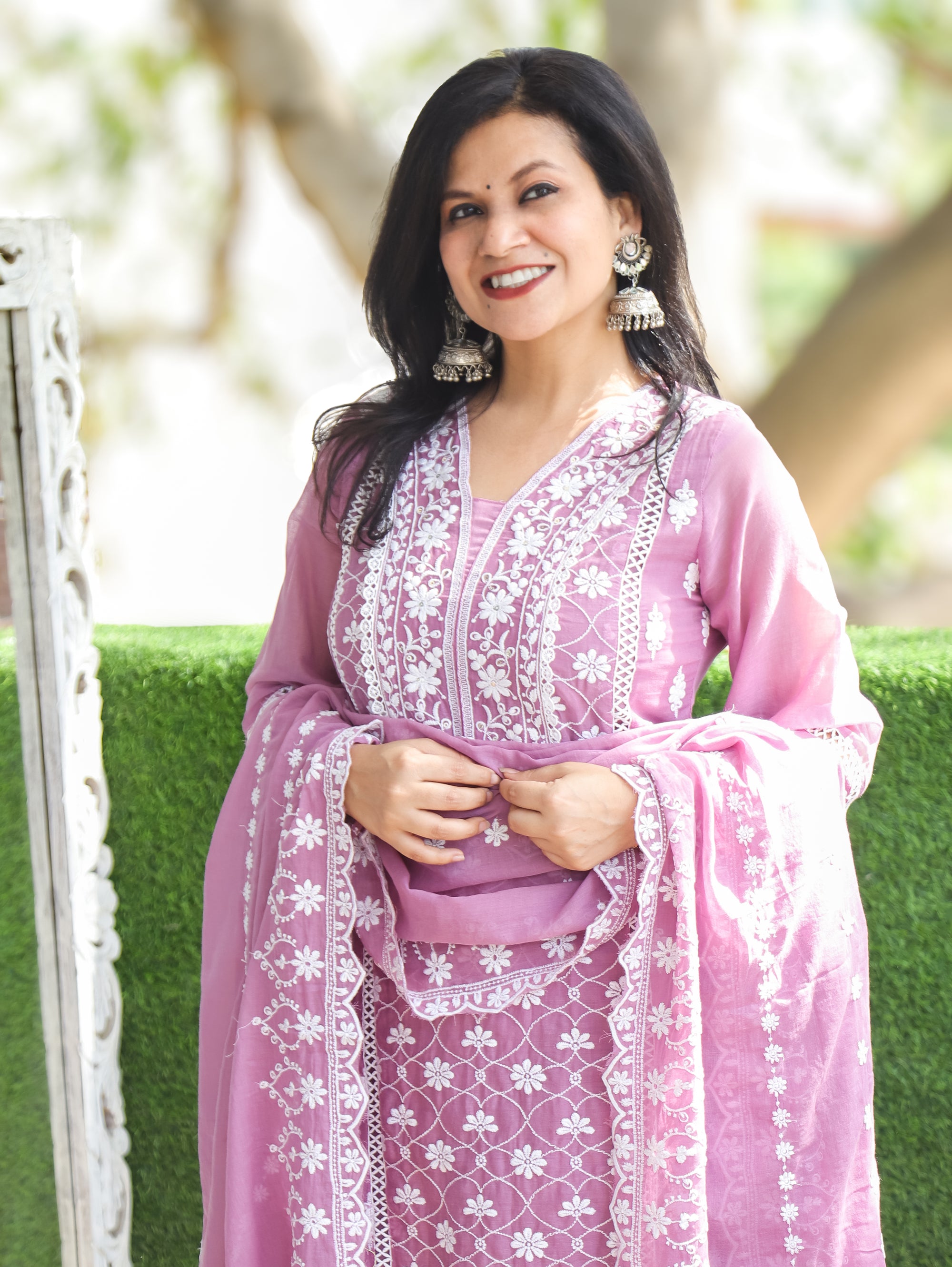 Olivia Orchid Lilac Mirror Yoke Cotton Kurti