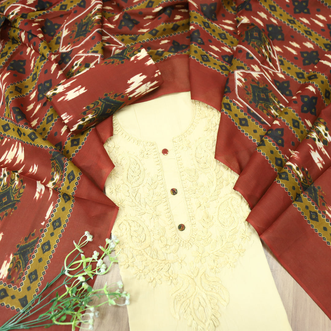 Kiara Sand Beige and Embroidered with Button Work Cotton Set
