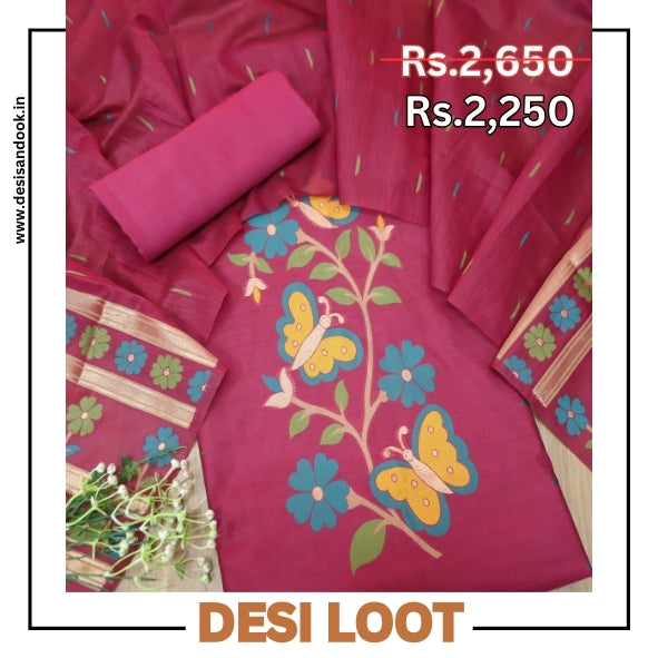 Ishika Magenta Pink All Over Authentic and Floral Jamdani Weaved Hem Chanderi Set
