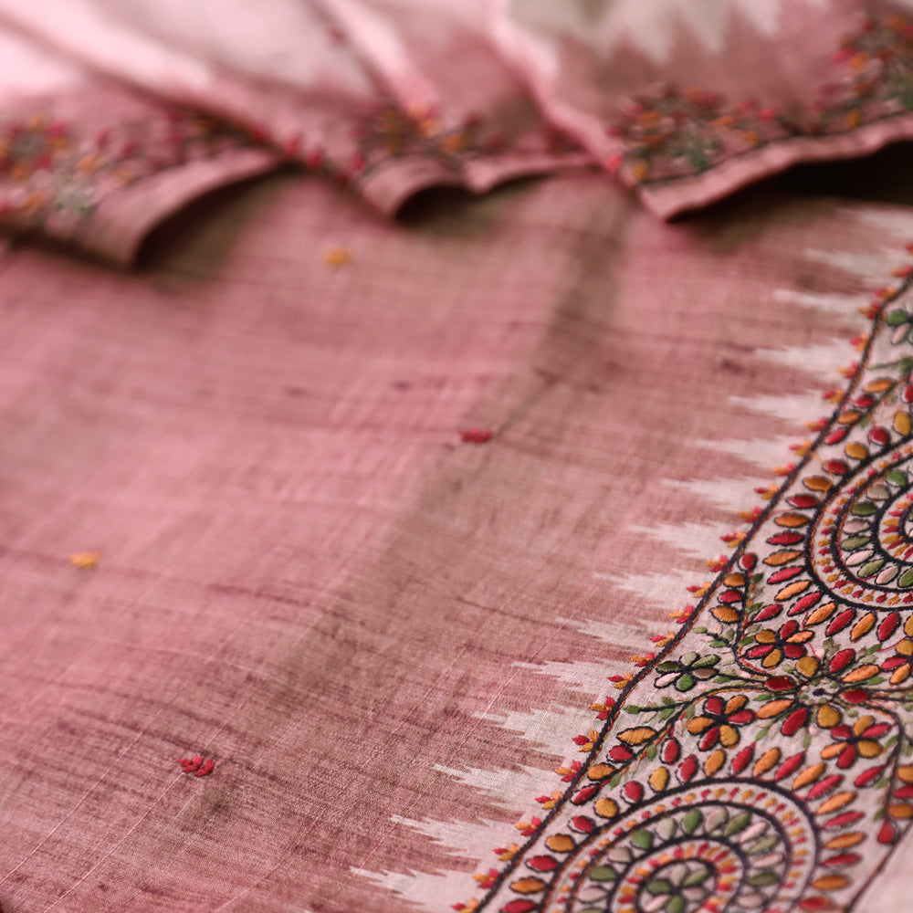 Rishika Mauve Pink Schiffli with Thread Work Printed Hem Tussar Chanderi Silk Set