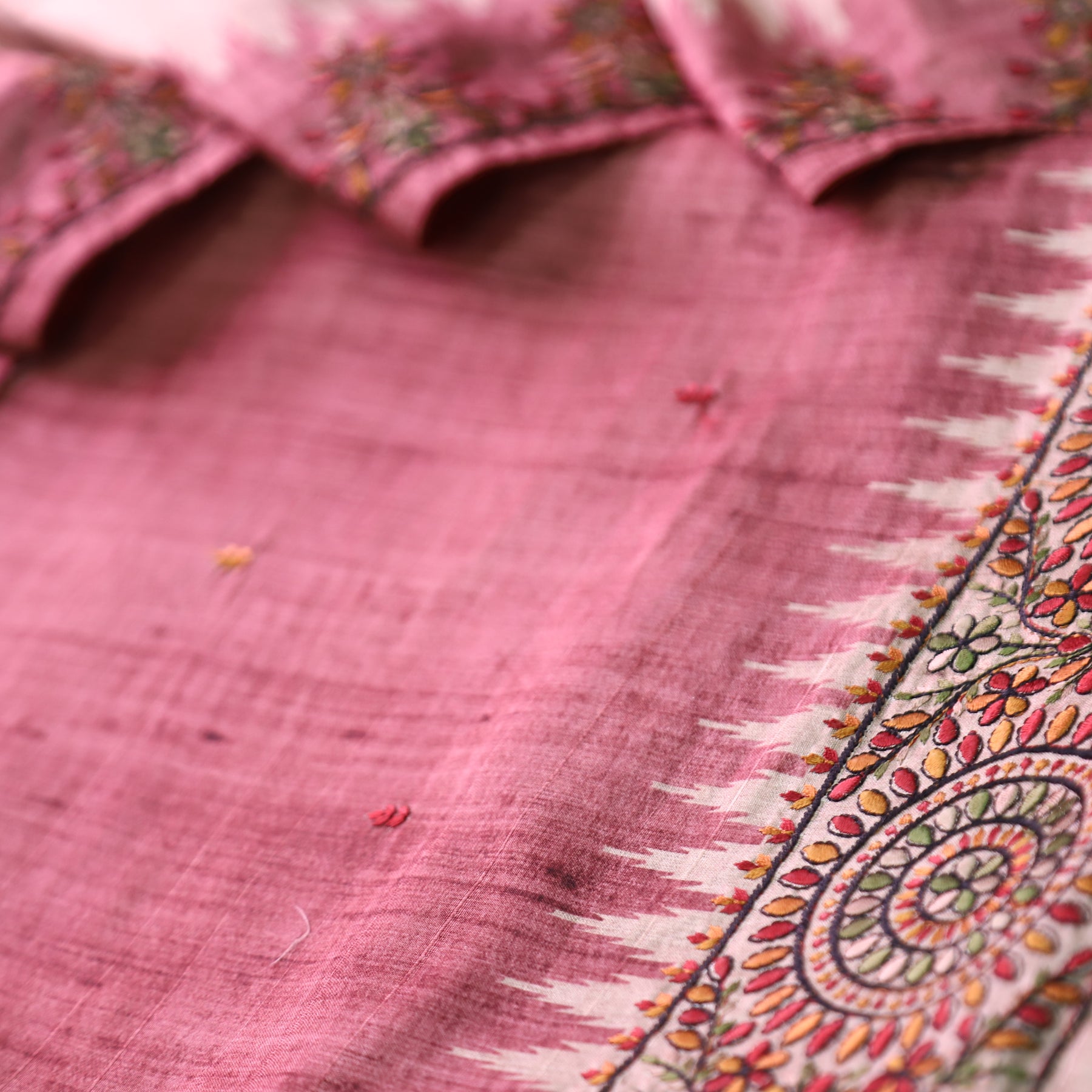 Rishvi Magenta PInk Thread Embroidered Hemline Tussar Chanderi Silk Set