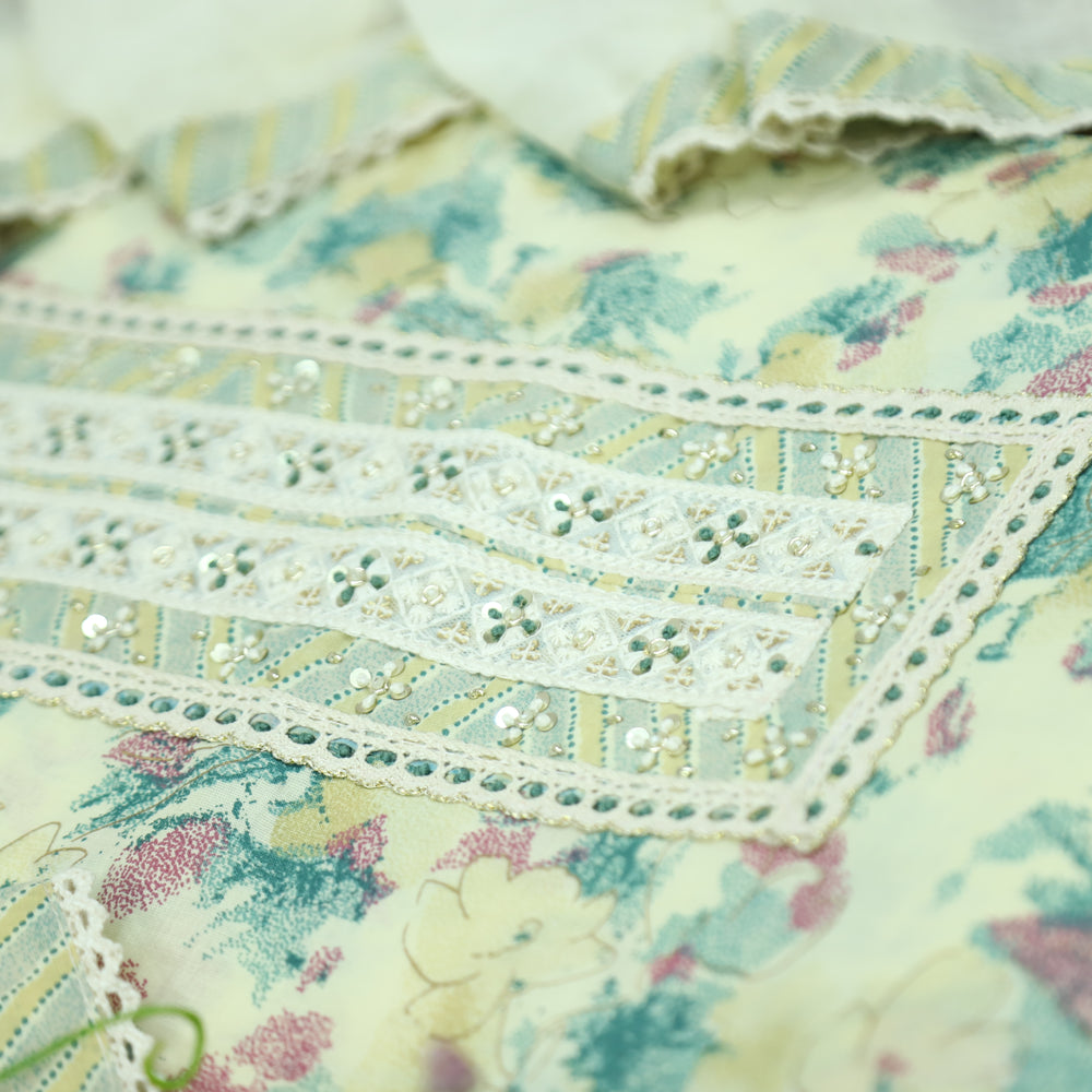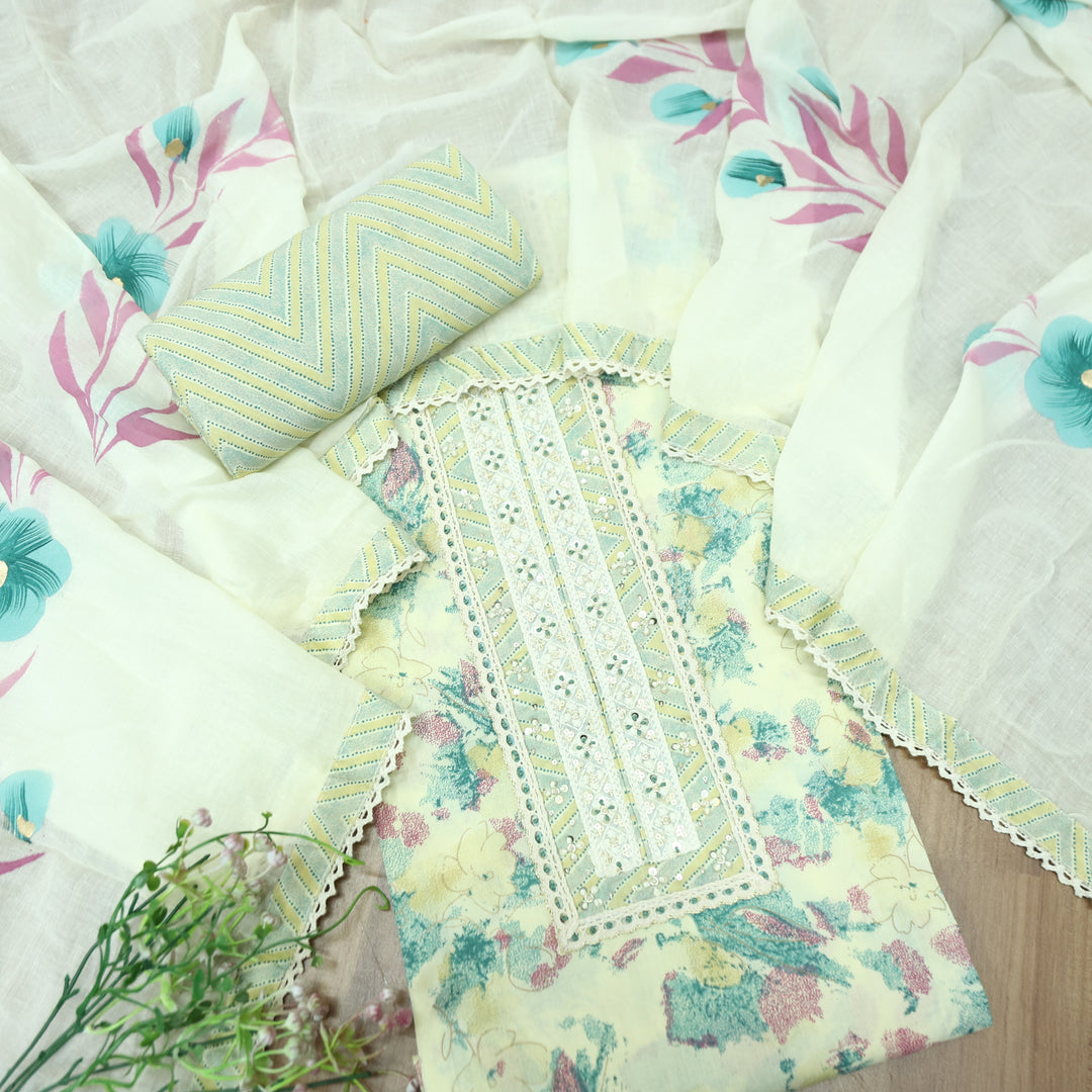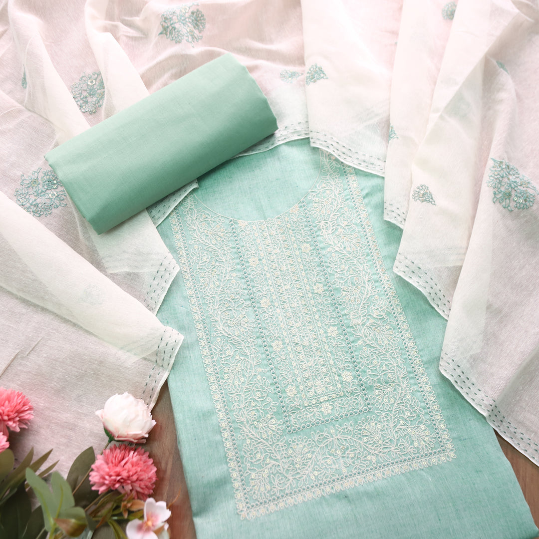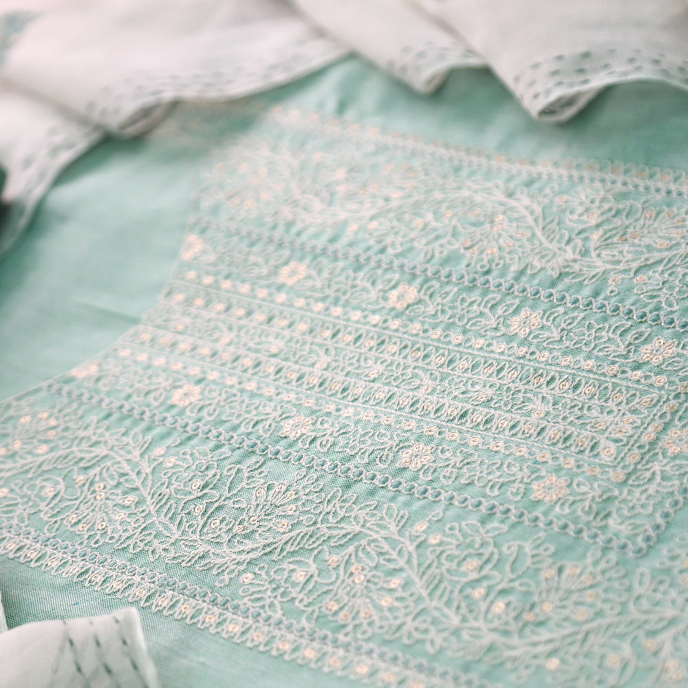 Nigahen Castleton Mint Thread Embroidered Neck Work Cotton Suit Set