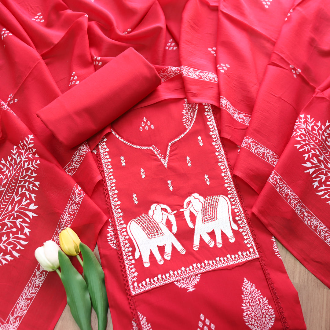 Yashvi Bride Red Gajj Embroidered Work Yoke Block Printed Panel Cotton Suit Set