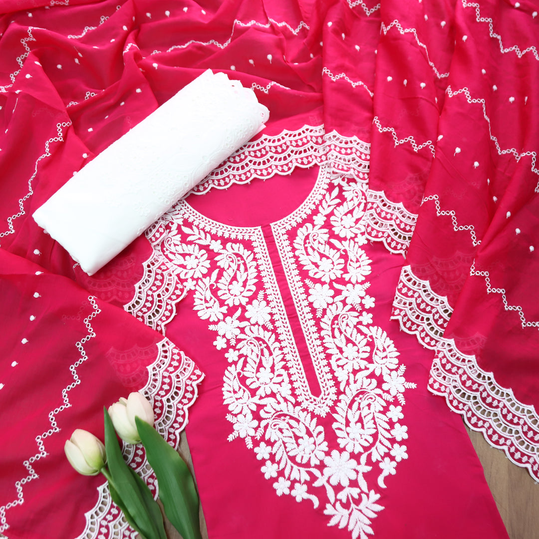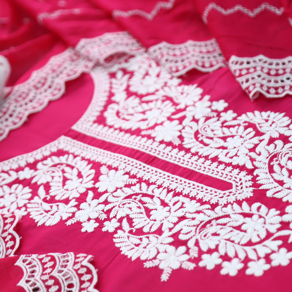 Neelamaber Magenta Pink French Knot with Applique Work on Front Cotton Set