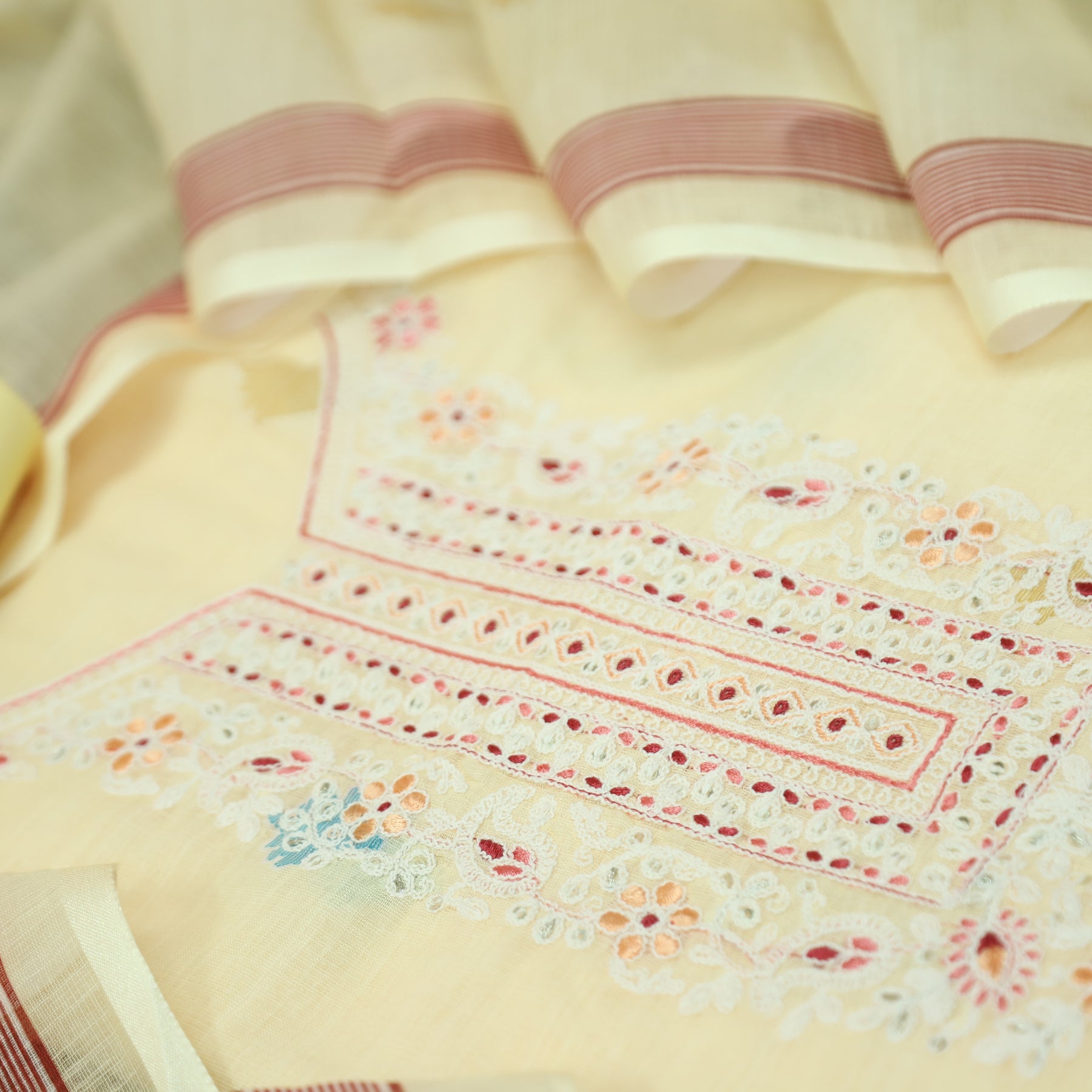 Chandni Butter Yellow Thread Embroidered Neck with Print Cotton Linen Set