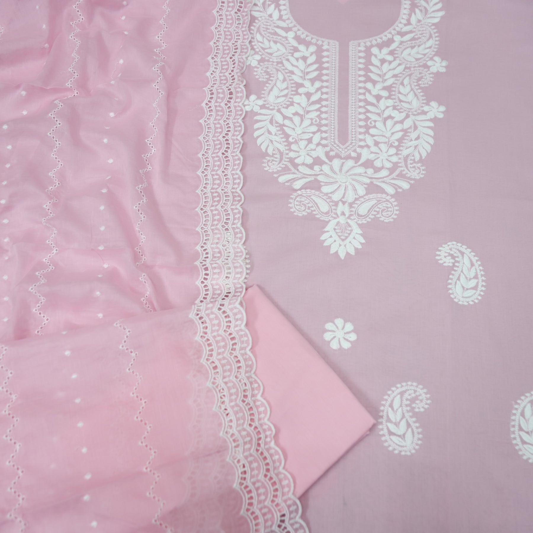 Apurav Soft Candy Pink Chikankari Inspired Neck Work Cotton Suit Set