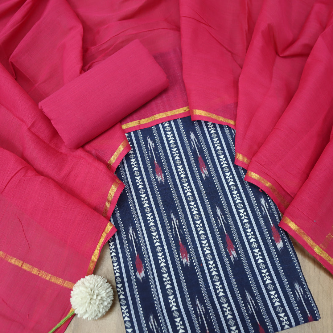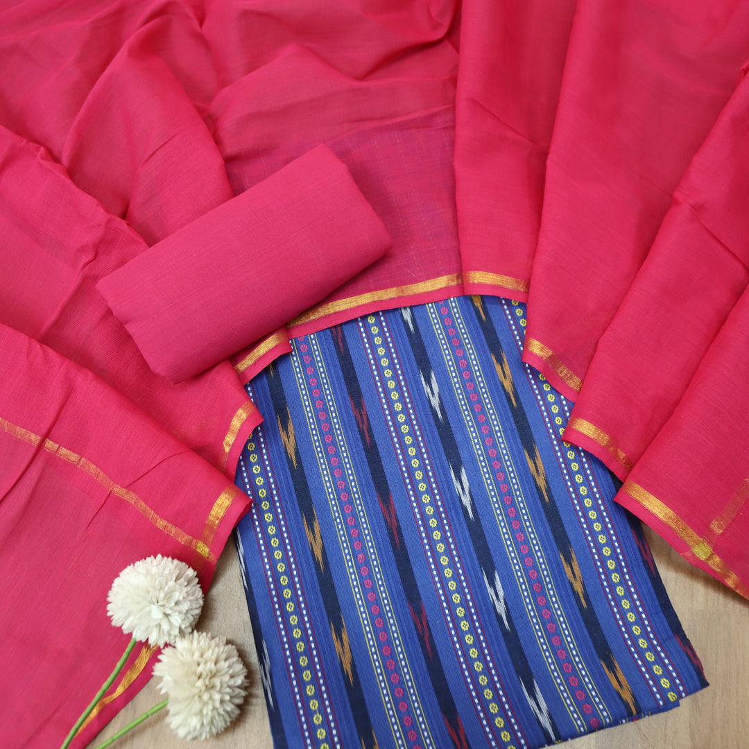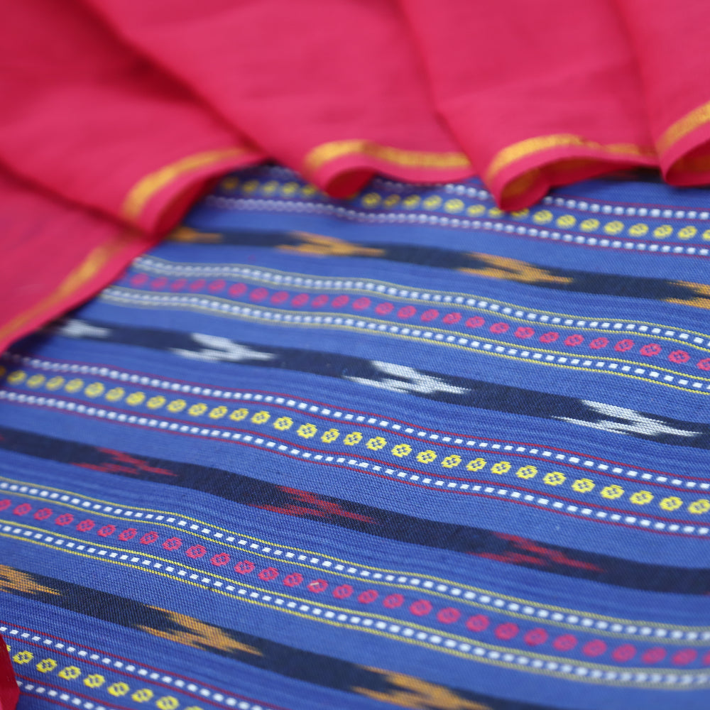 Droupadi Magenta Pink All Over Thread and Sambhalpuri Ikkat Style Weaved Cotton Set