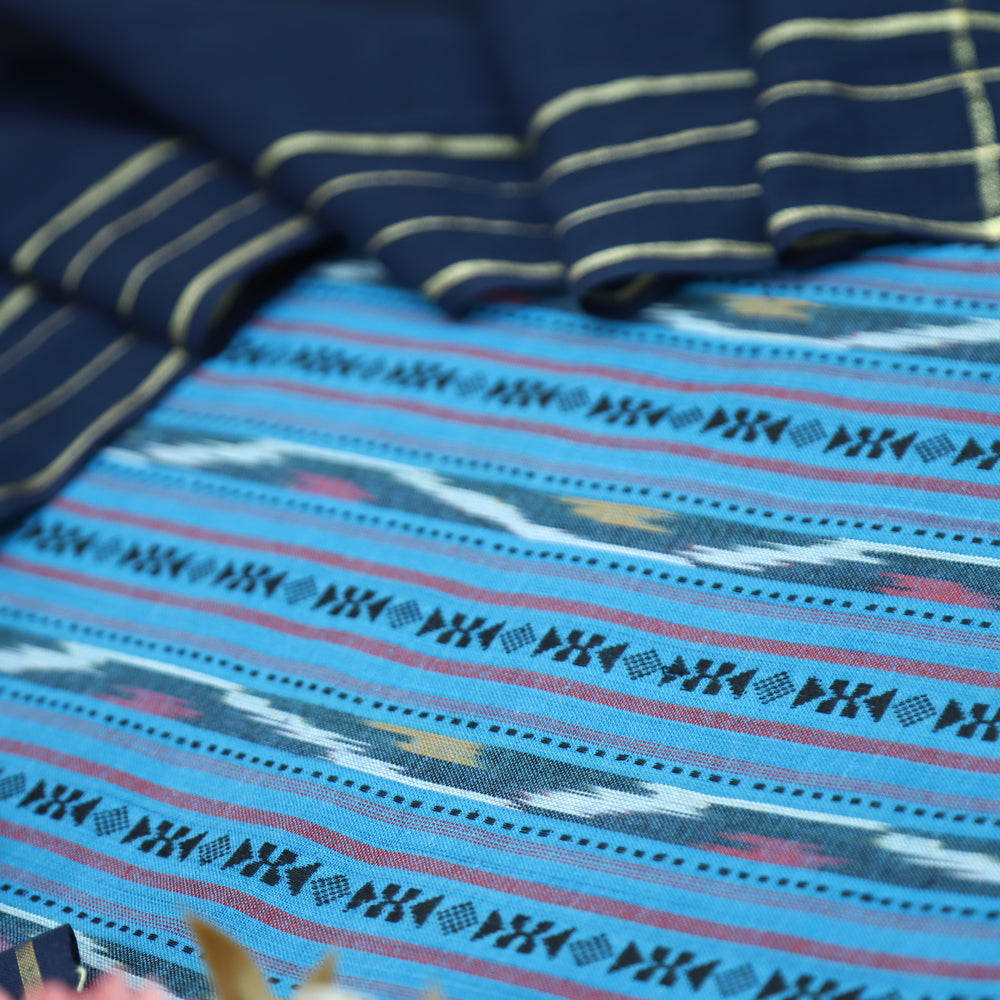 Droupadi Sapphire Blue All Over Thread and Sambhalpuri Ikkat Style Weaved Cotton Set