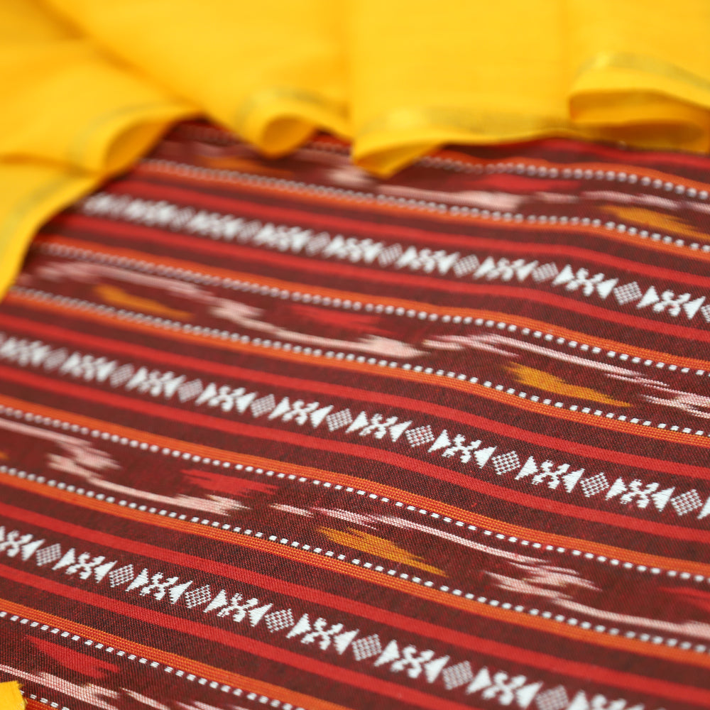 Droupadi Barn Maroon All Over Thread and Sambhalpuri Ikkat Style Weaved Cotton Set