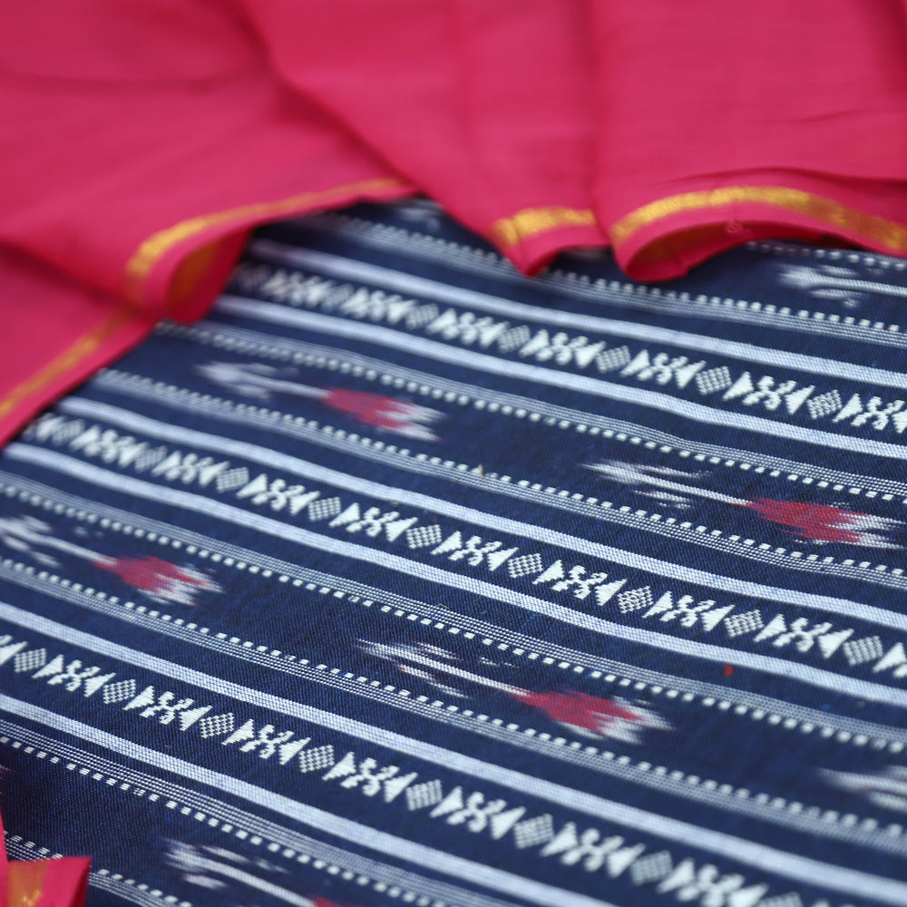 Droupadi Navy Blue All Over Thread and Sambhalpuri Ikkat Style Weaved Cotton Set