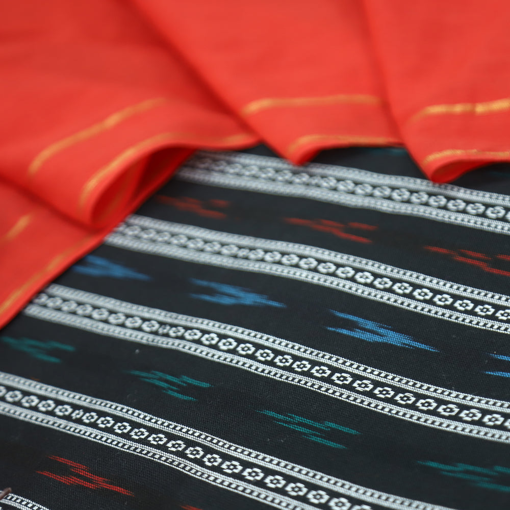 Droupadi Ebony Black All Over Thread and Sambhalpuri Ikkat Style Weaved Cotton Set