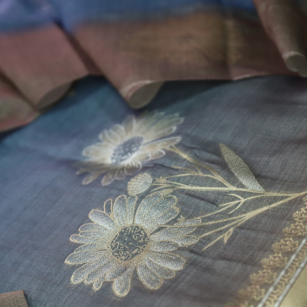 Khwahish Denim Blue Floral Zari Weaved Hem Work Jamdani Chanderi Suit Set