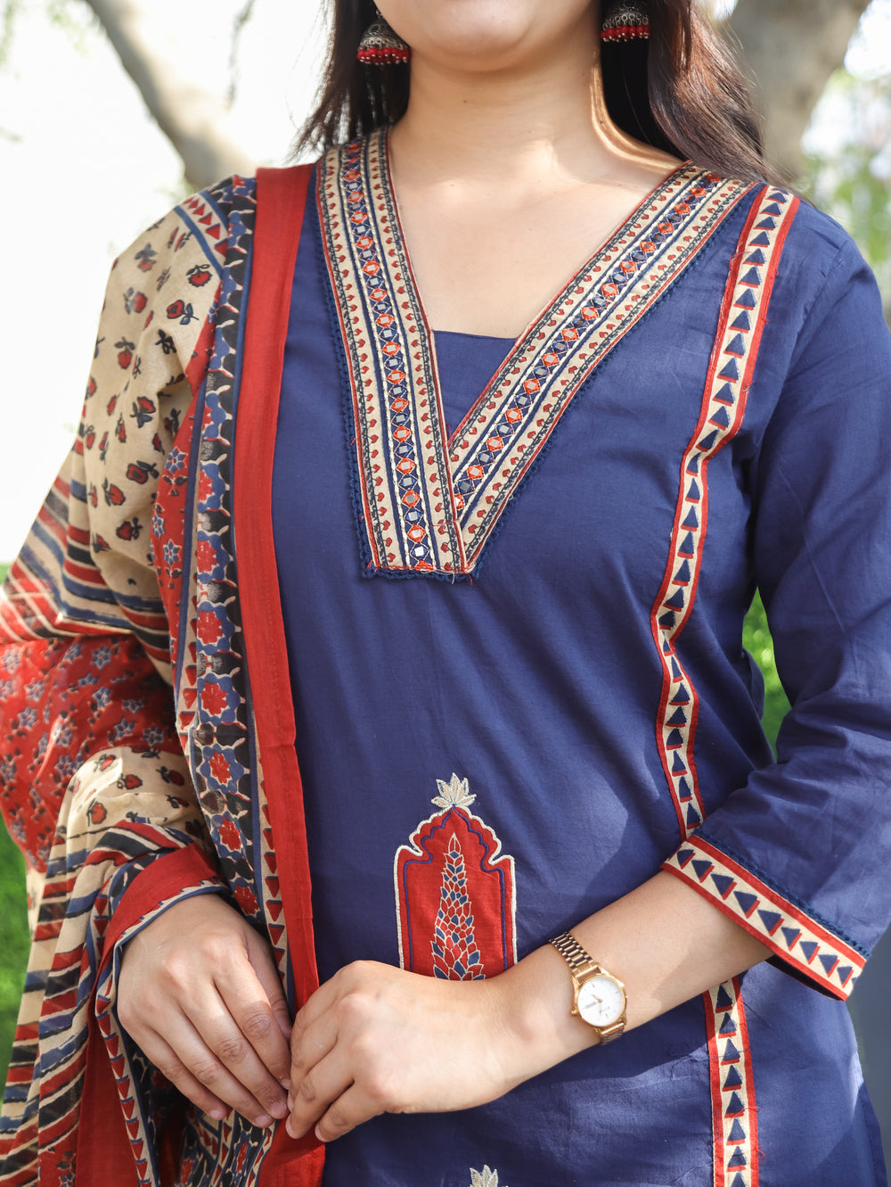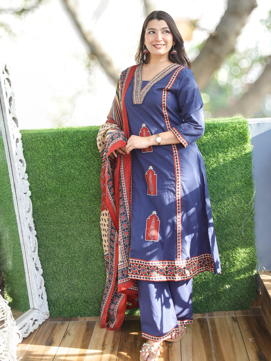 Nancy Navy Blue Mughal Cotton 3 Piece Set