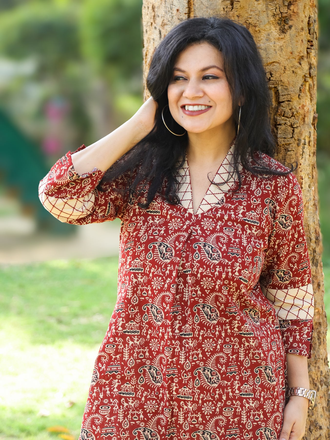 Neck: Sailor Collar Style Neck in Warli Printed Cotton