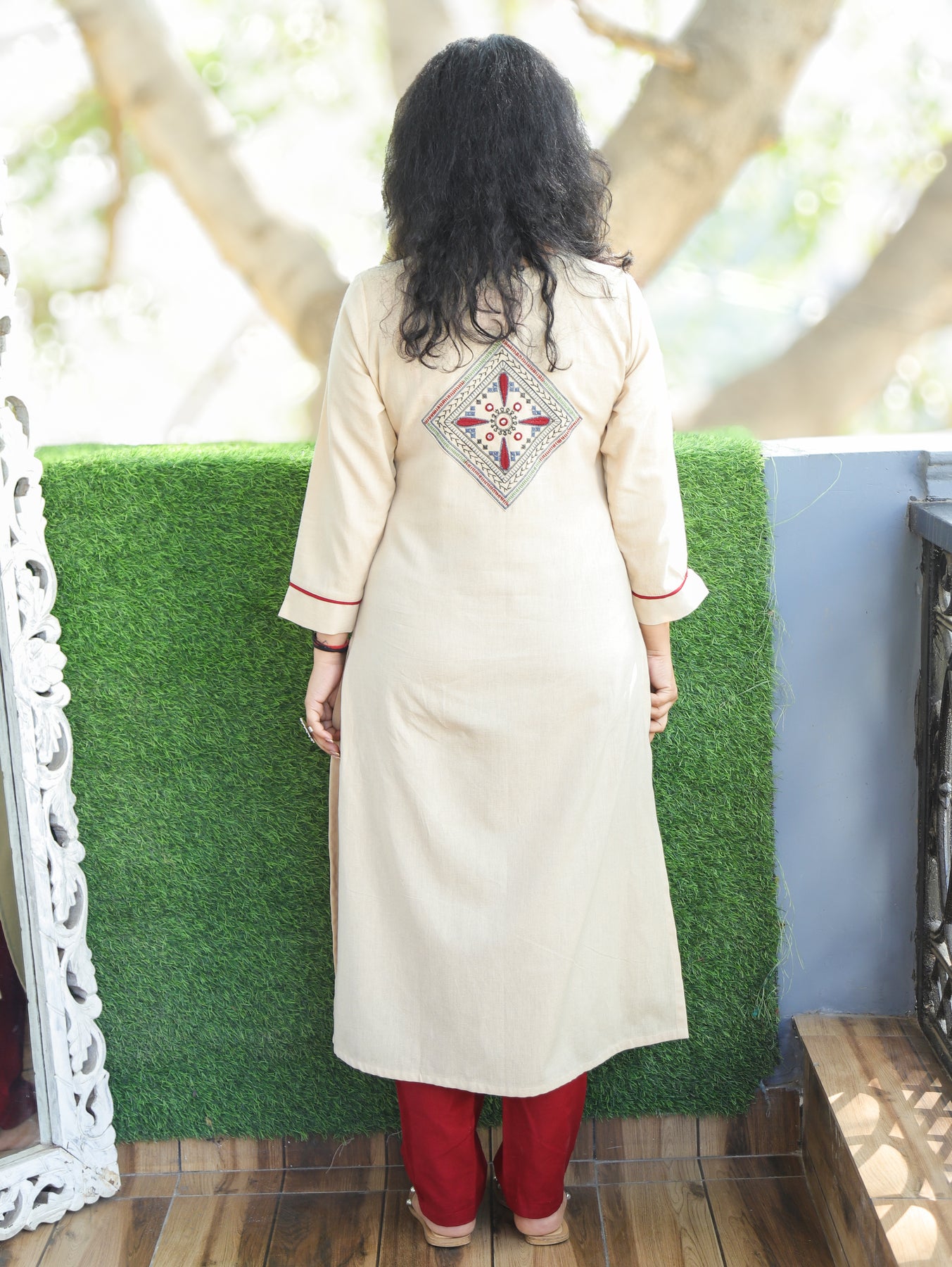 Chanda Shell White Thread Embroidered Neck Yoke Work Cotton Kurti