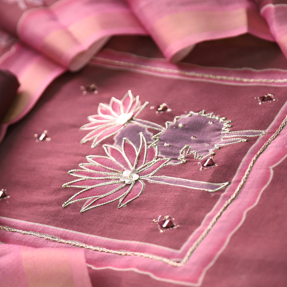 Khayal Candy Pink Pichwai Authentic Jamdani Weaved Hemline Chanderi Suit Set