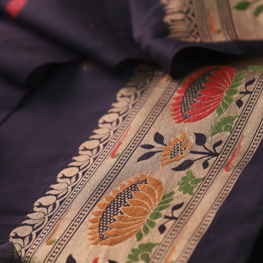 Kashish Midnight Black Jamdani Jacquard Weaved Paithani Inspired Chanderi Set