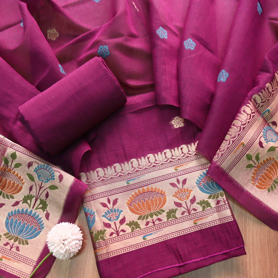Kashish Magenta Purple Jamdani Jacquard Weaved Paithani Inspired Chanderi Set