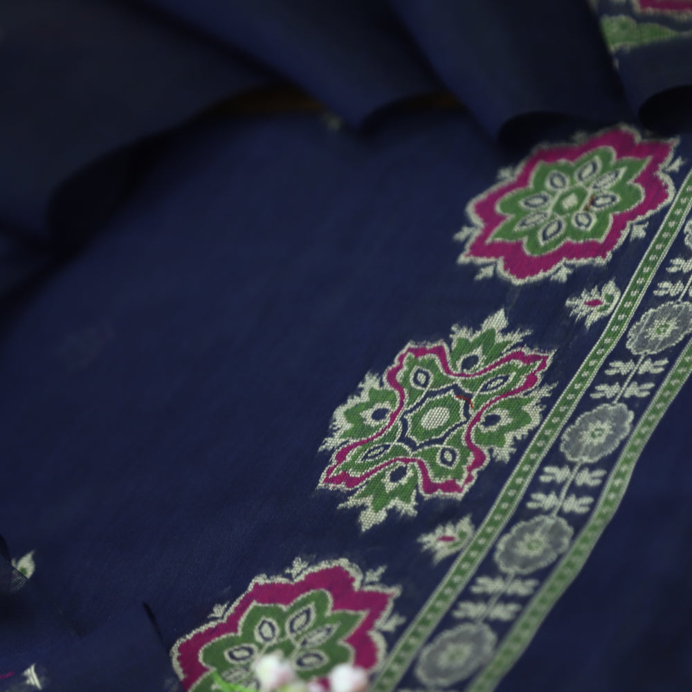 Dhun Royal Blue Thread Authentic Jamdani Weaved Hem Suit Set