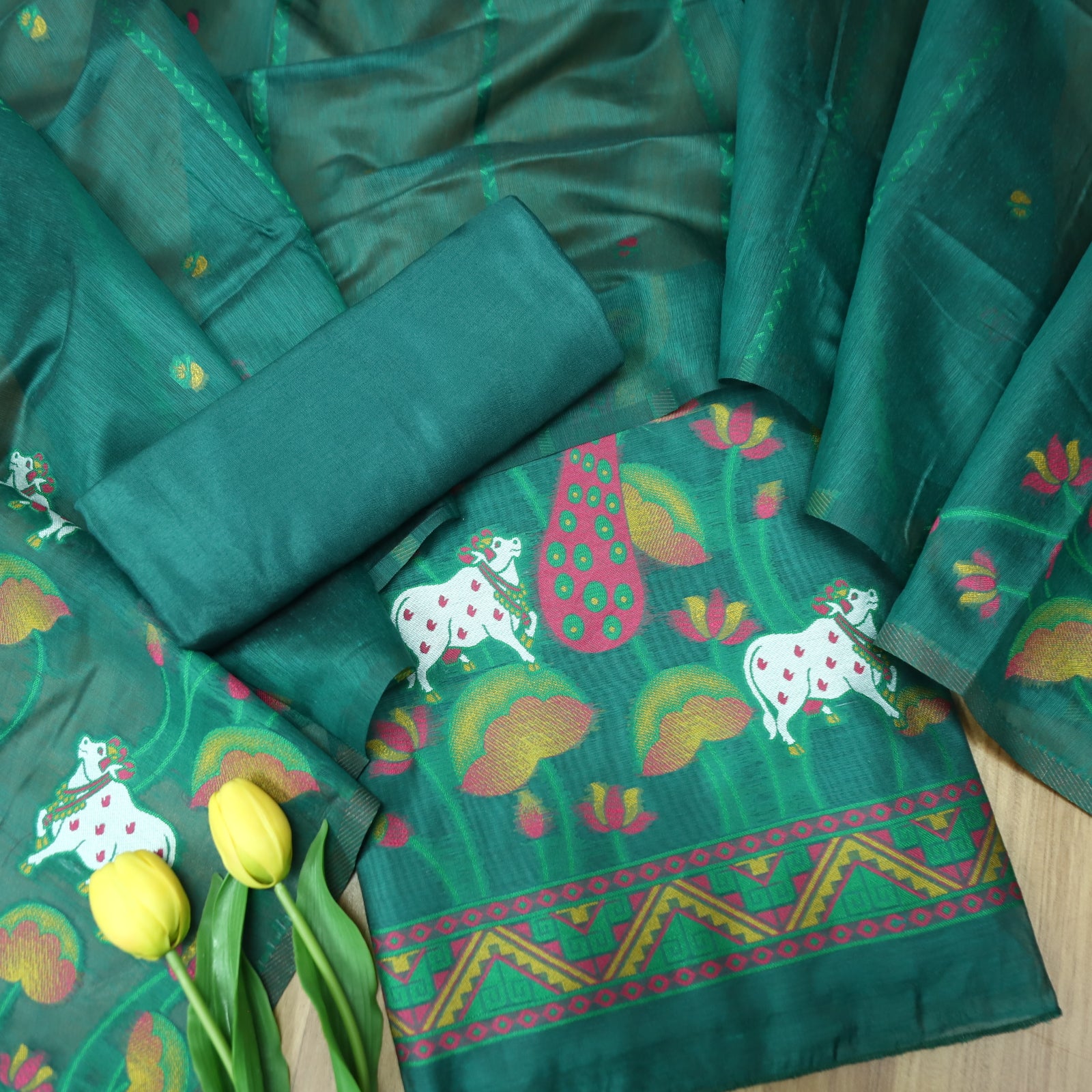 Hamraavi Emerald Teal with All Over Authentic Pichwai Jamdani Weaved Hem Suit Set