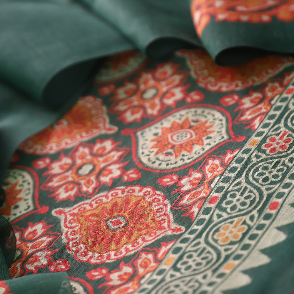 Hamraavi Sacramento Green with All Over Authentic Jamdani Weaved Hem Suit Set