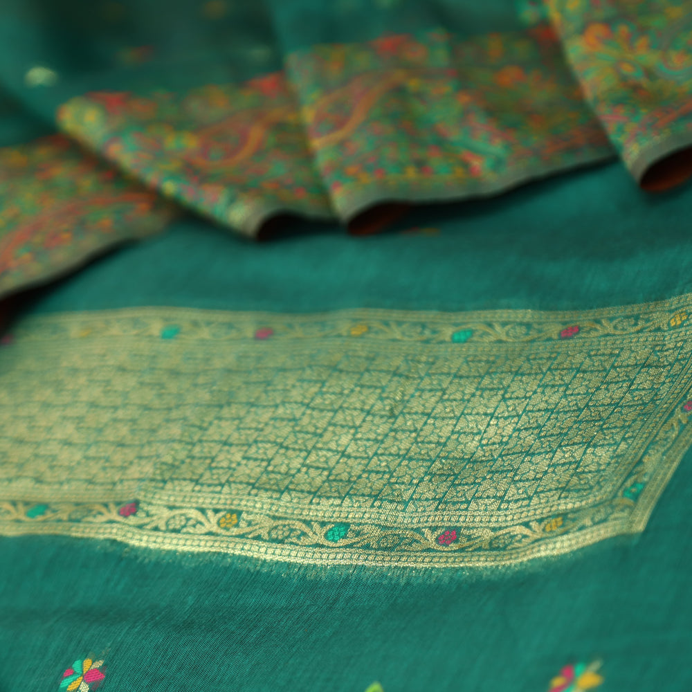 Hamsafar Emerald Green Thread with Zari Authentic Jamdani Weaved Hem Suit Set