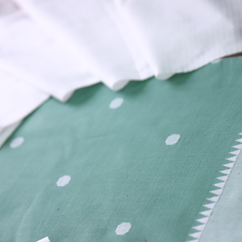 Janki Cambridge Sage All Over Thread Weaved Buti with Temple Hem Cotton Suit Set