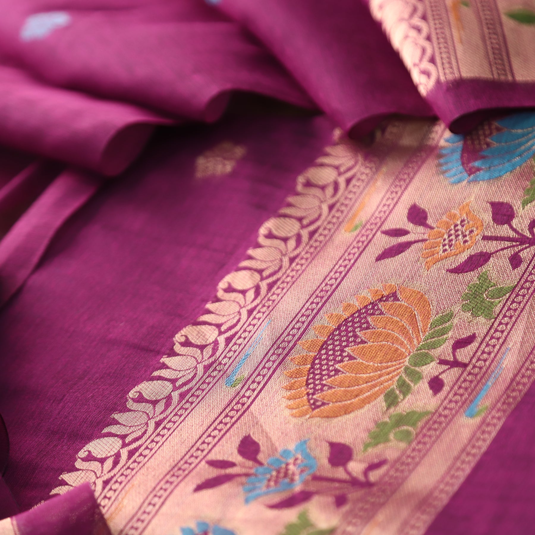 Kashish Magenta Purple Jamdani Jacquard Weaved Paithani Inspired Chanderi Set