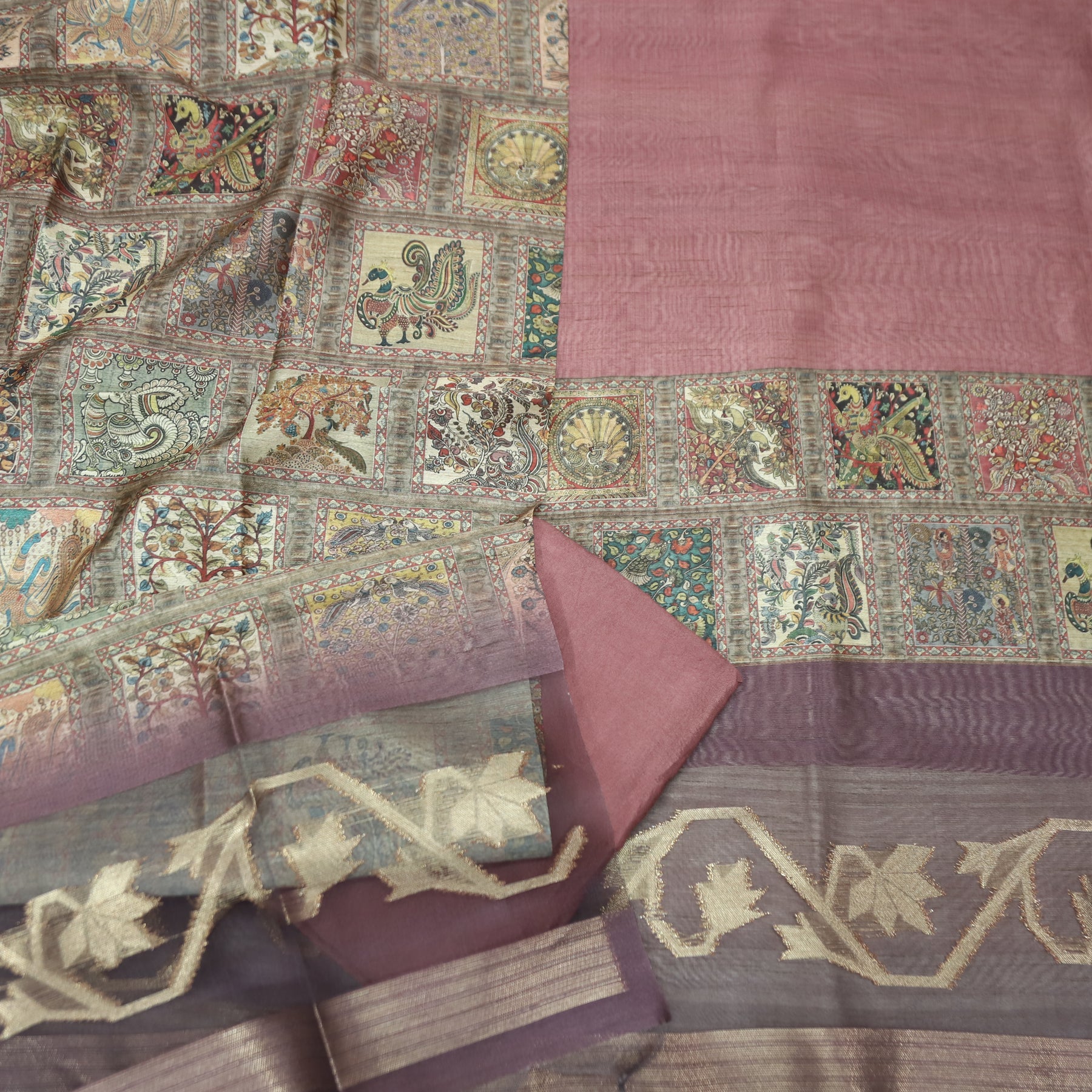 Rooprani Mauve Pink Kalamkari Print with Zari Detailing Korean Tussar Chanderi Set