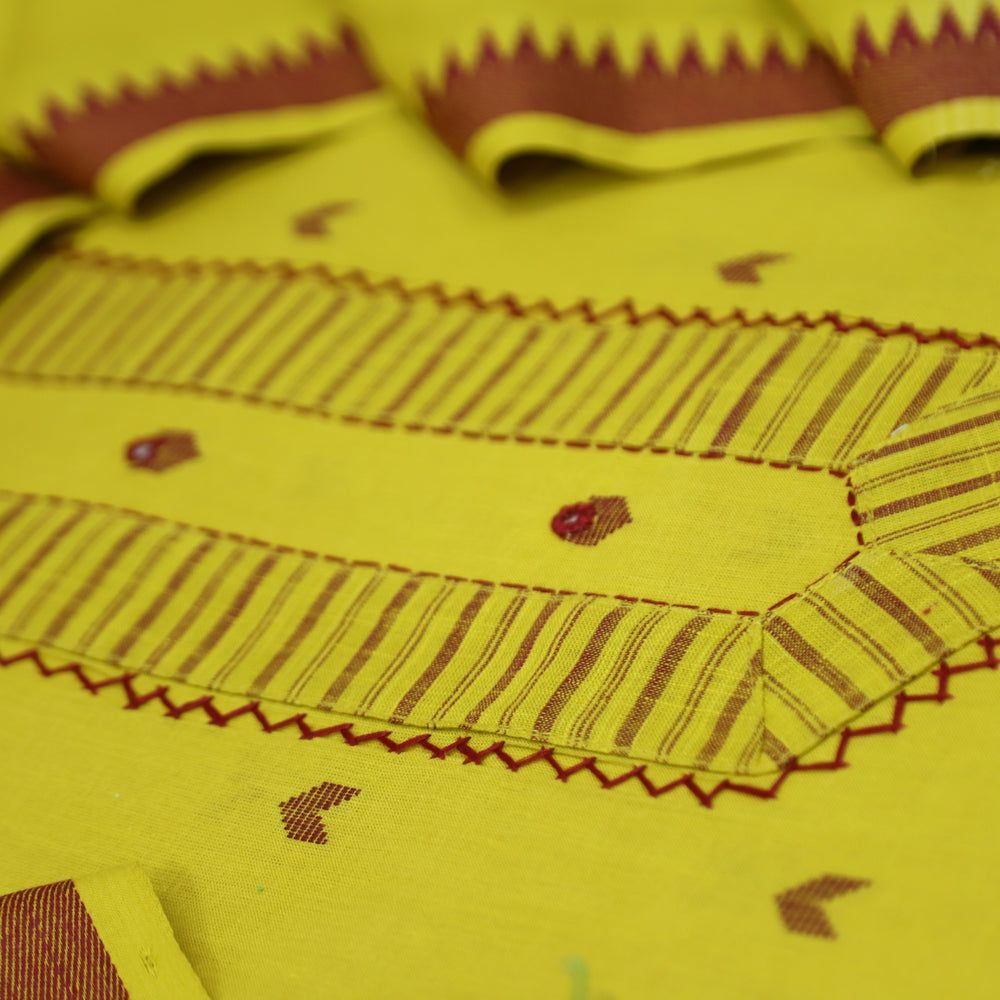 Vaishnavi Lemon Yellow Patch with All Over Thread Weaved Buti Work South Cotton Set