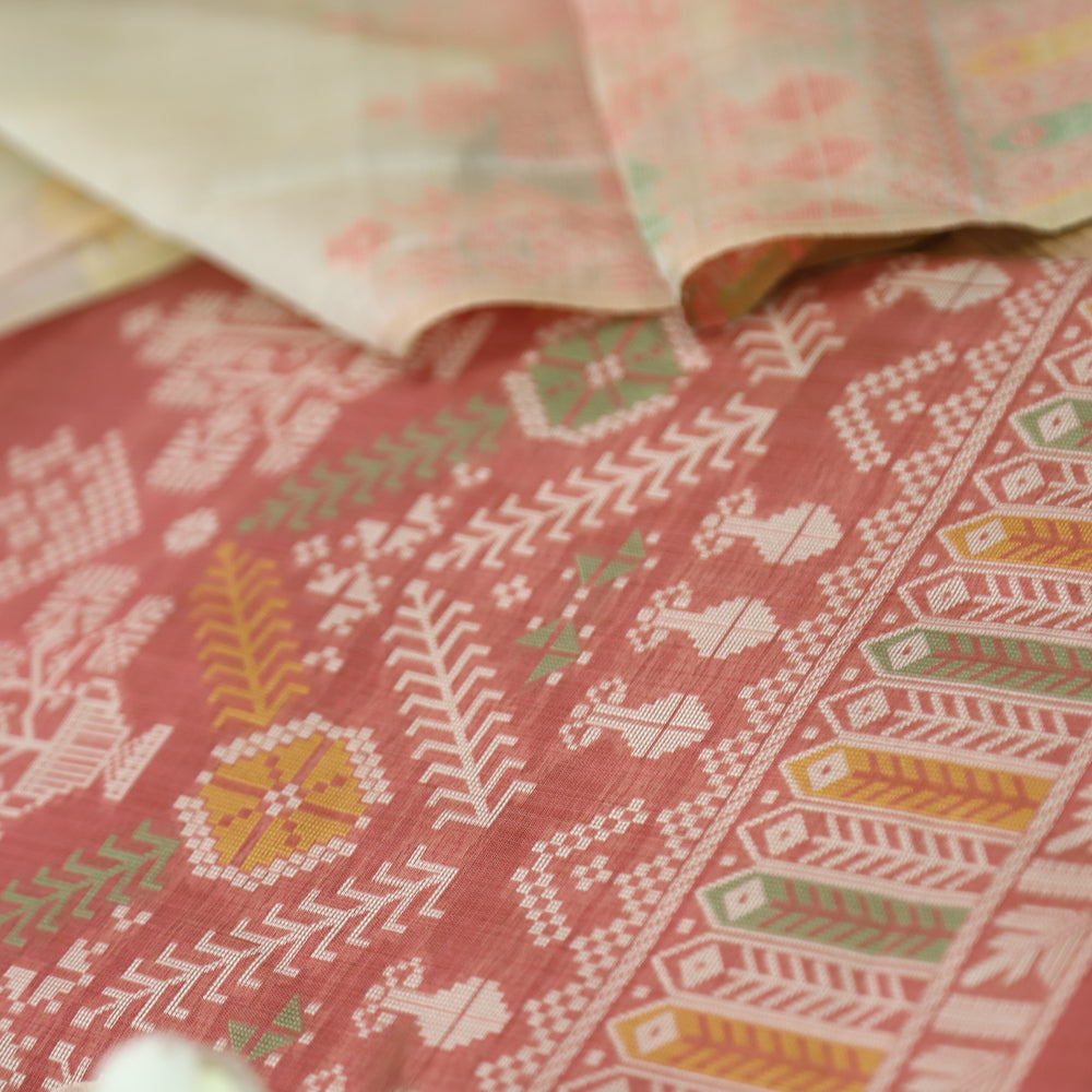 Aisha Mauve Pink with All Over Authentic Jamdani Weaved On Hem Suit Set