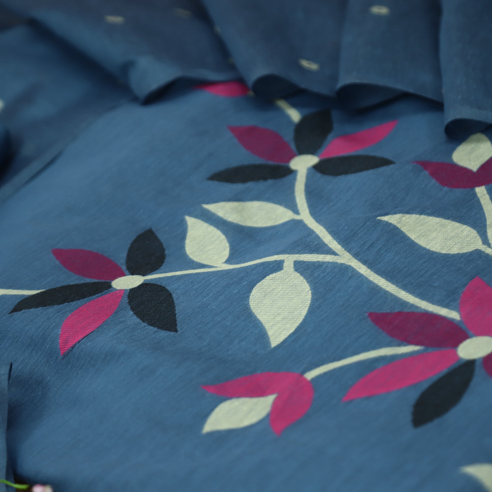 Kashish Indigo Blue Jamdani Jacquard Weaved Paithani Inspired Chanderi Set