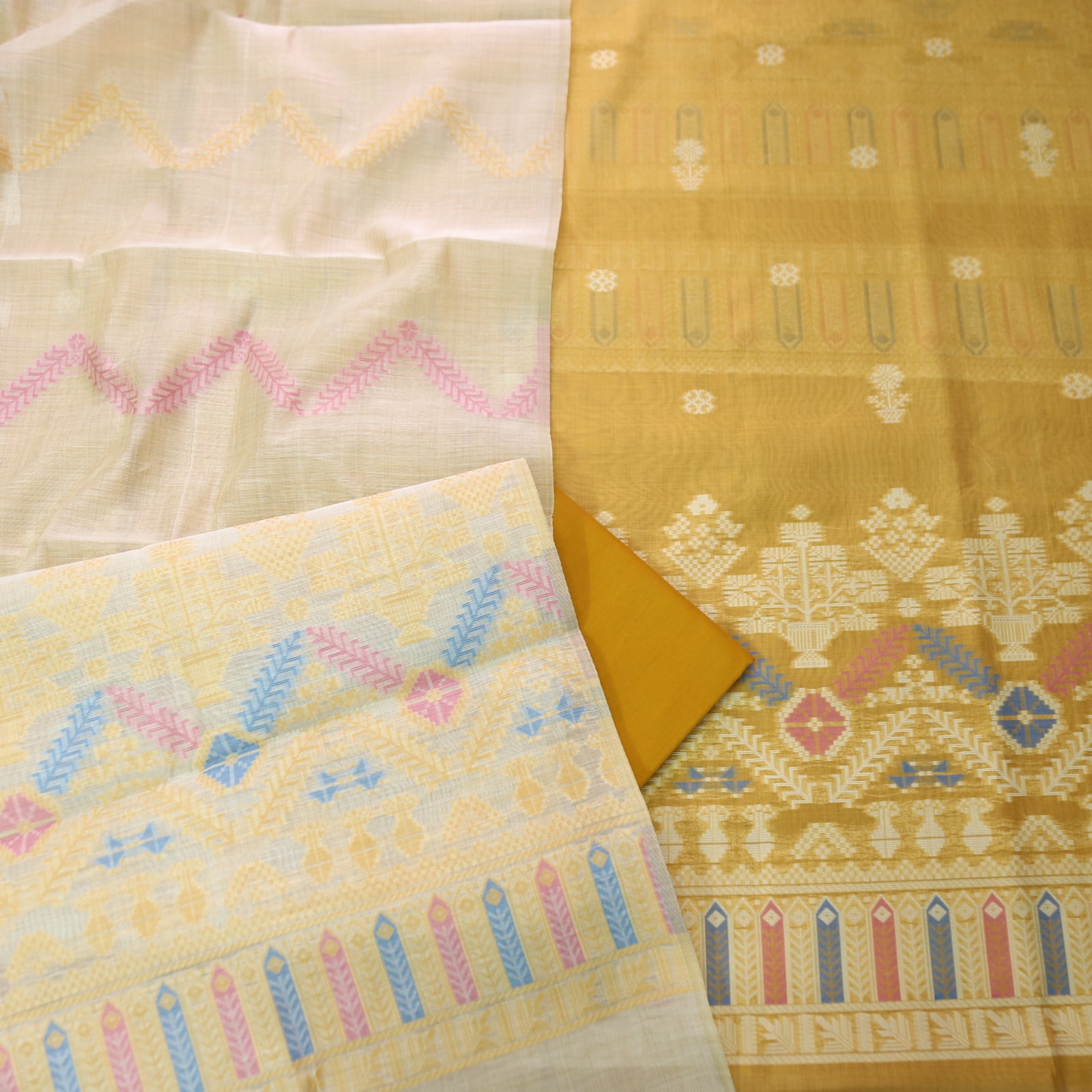 Aisha Corn Yellow with All Over Authentic Jamdani Weaved On Hem Suit Set