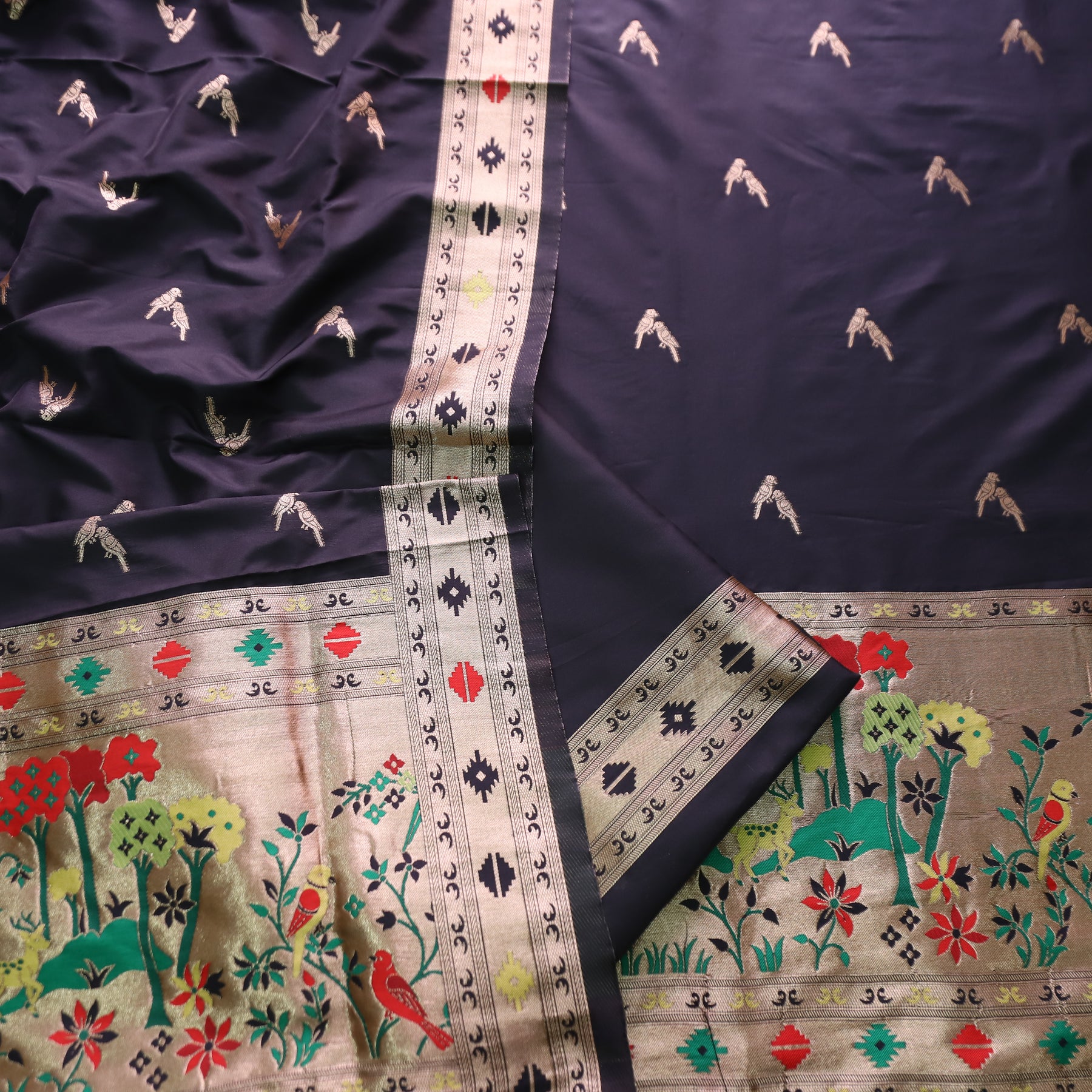 Dildaari Midnight Black Banarasi Jacquard Weaved Hemline Paithani Silk Set