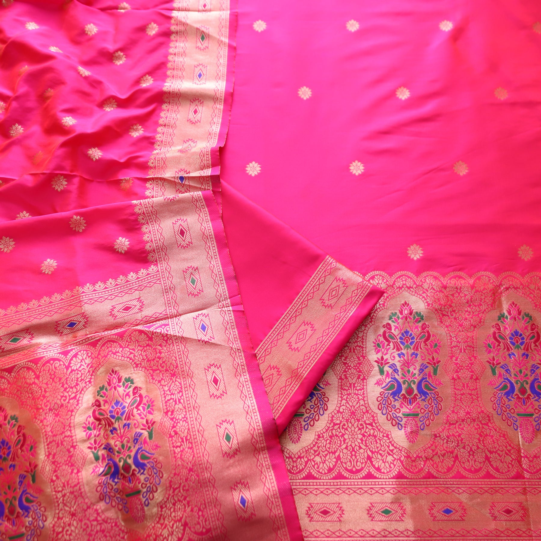 Saarthi Bright Pink Banarasi Jacquard Weaved Hemline Paithani Silk Set