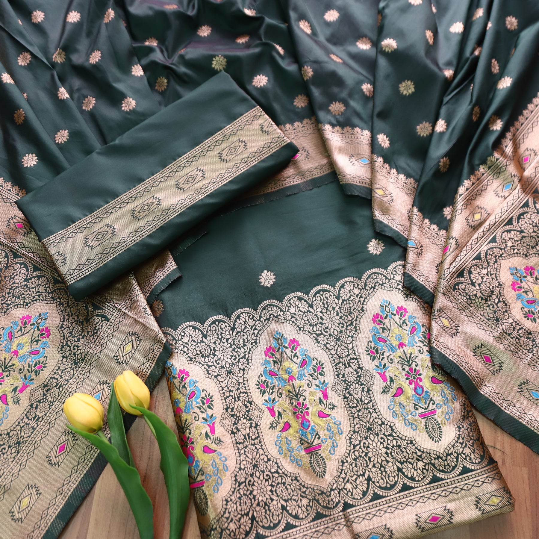 Saarthi Sacramento Green Banarasi Jacquard Weaved Hemline Paithani Silk Set