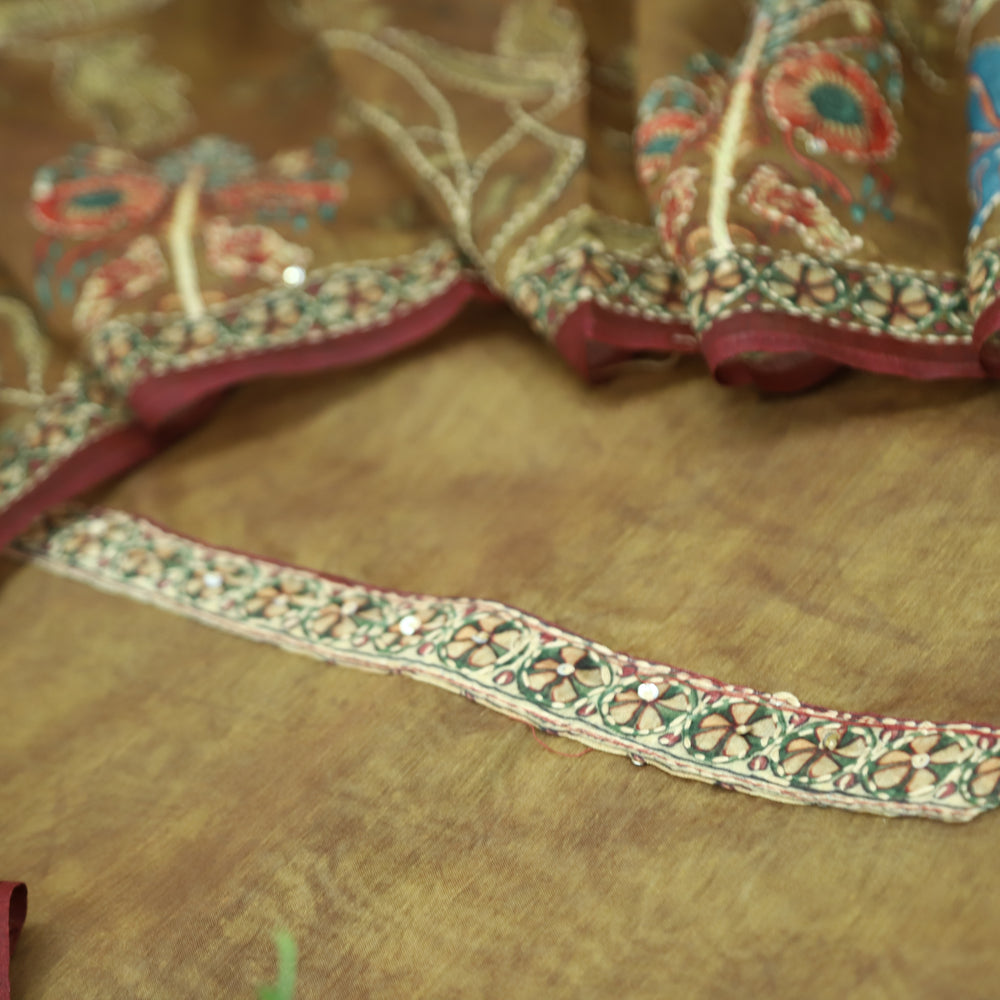 Saiyara Peel Orange with Kantha Embroidery Neck Work Chanderi Suit Set