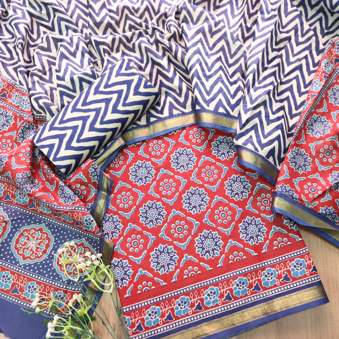 Jahaan Cherry Red All Over Digital Ajrak Printed Cotton Suit Set