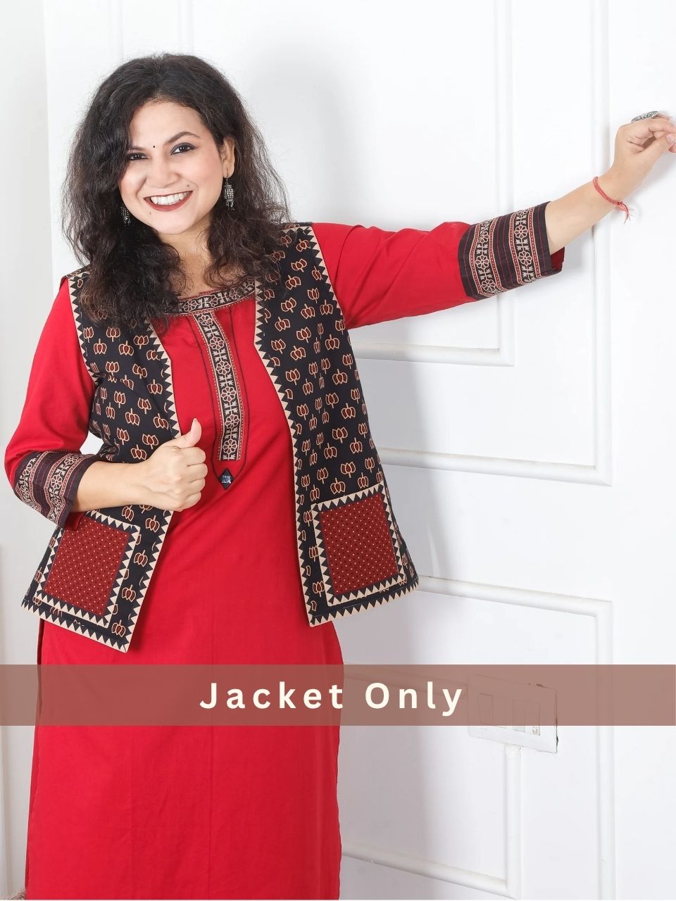 Sejal Ebony Black Lotus Printed Cotton Jacket with Pocket