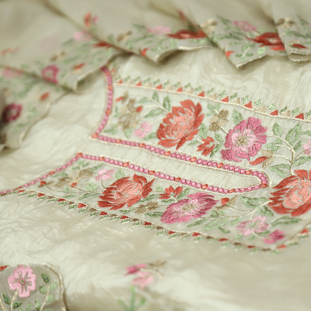 Avinya Buttermilk Beige Thread Embroidered Work in Crinkle Shimmer Tissue Organza Set
