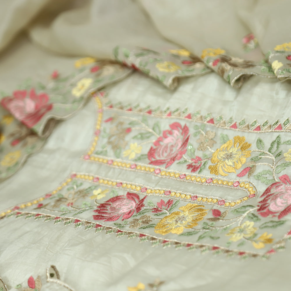 Rooh Sage Green Embellished Neckline with Thread Work Organza Suit Set