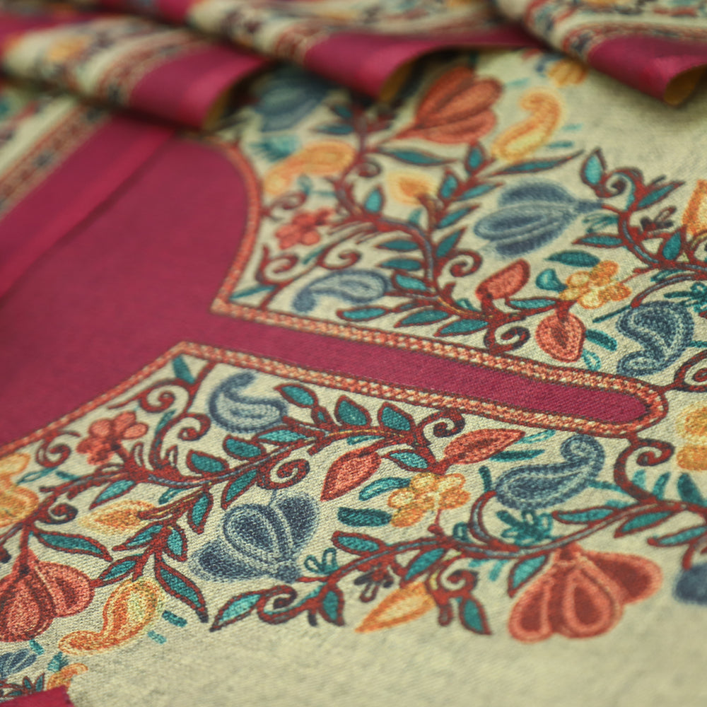 झिलमिल Maroon Red Elegant Digital Printed Semi Pashmina Winter Set