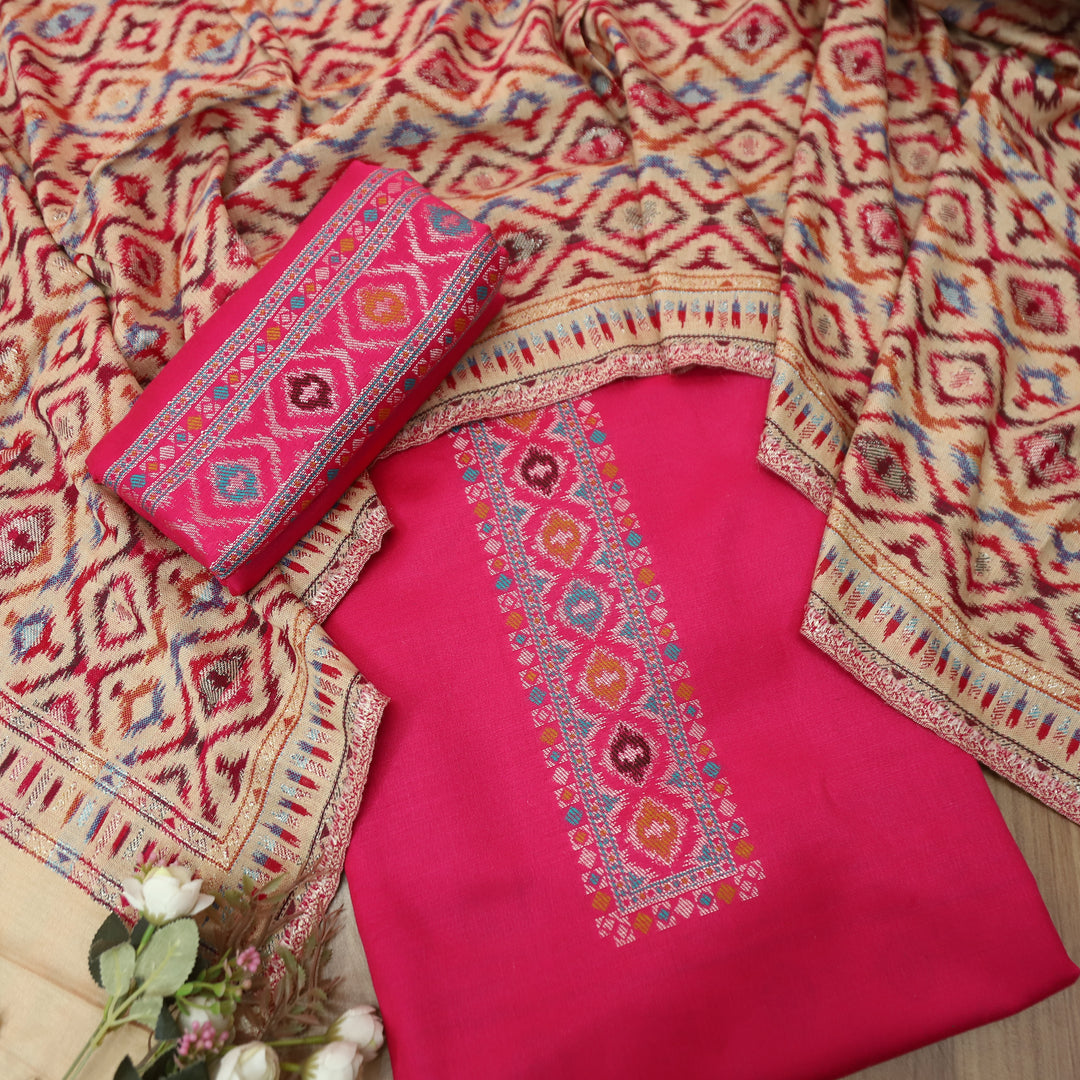 कमलिया Magenta Pink Thread Weaved Neck with Zari Semi Pashmina Suit Set