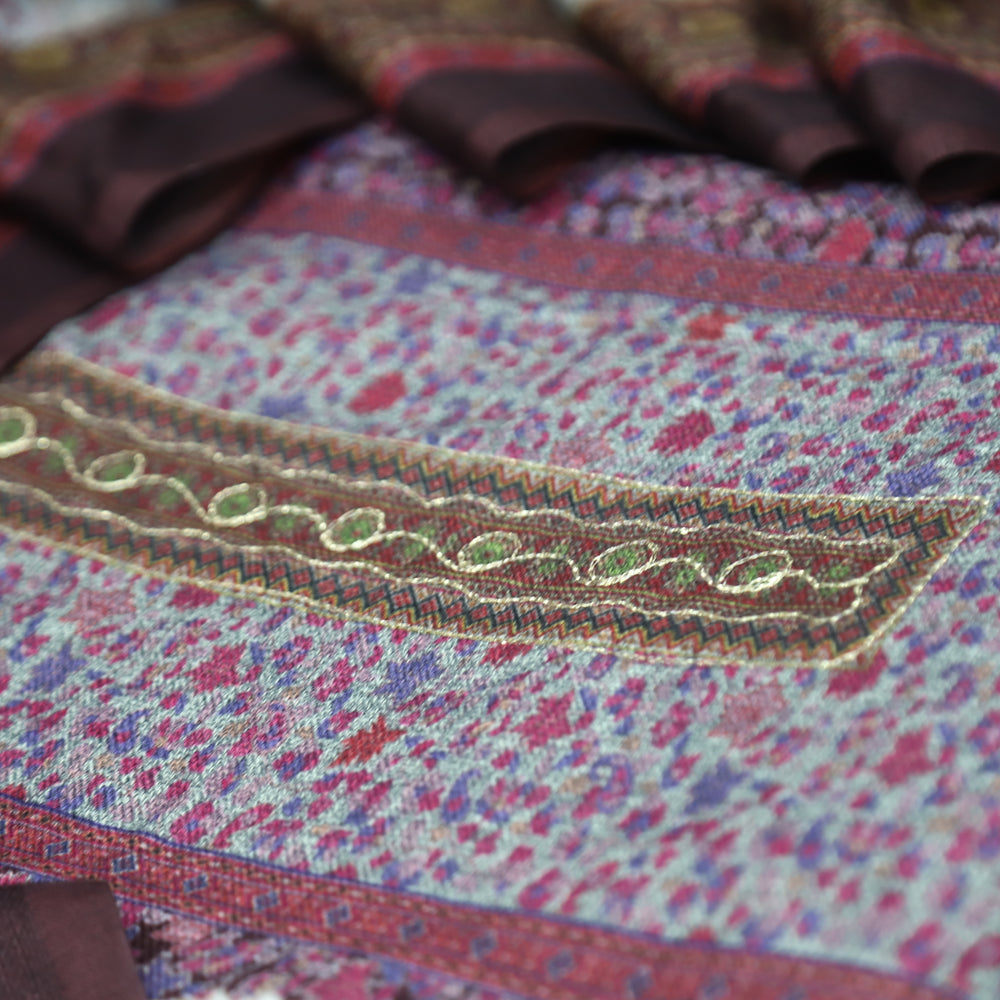 योगिनी Dark Maroon Woven with Kashida Embroidery Semi Pashmina Winter Set