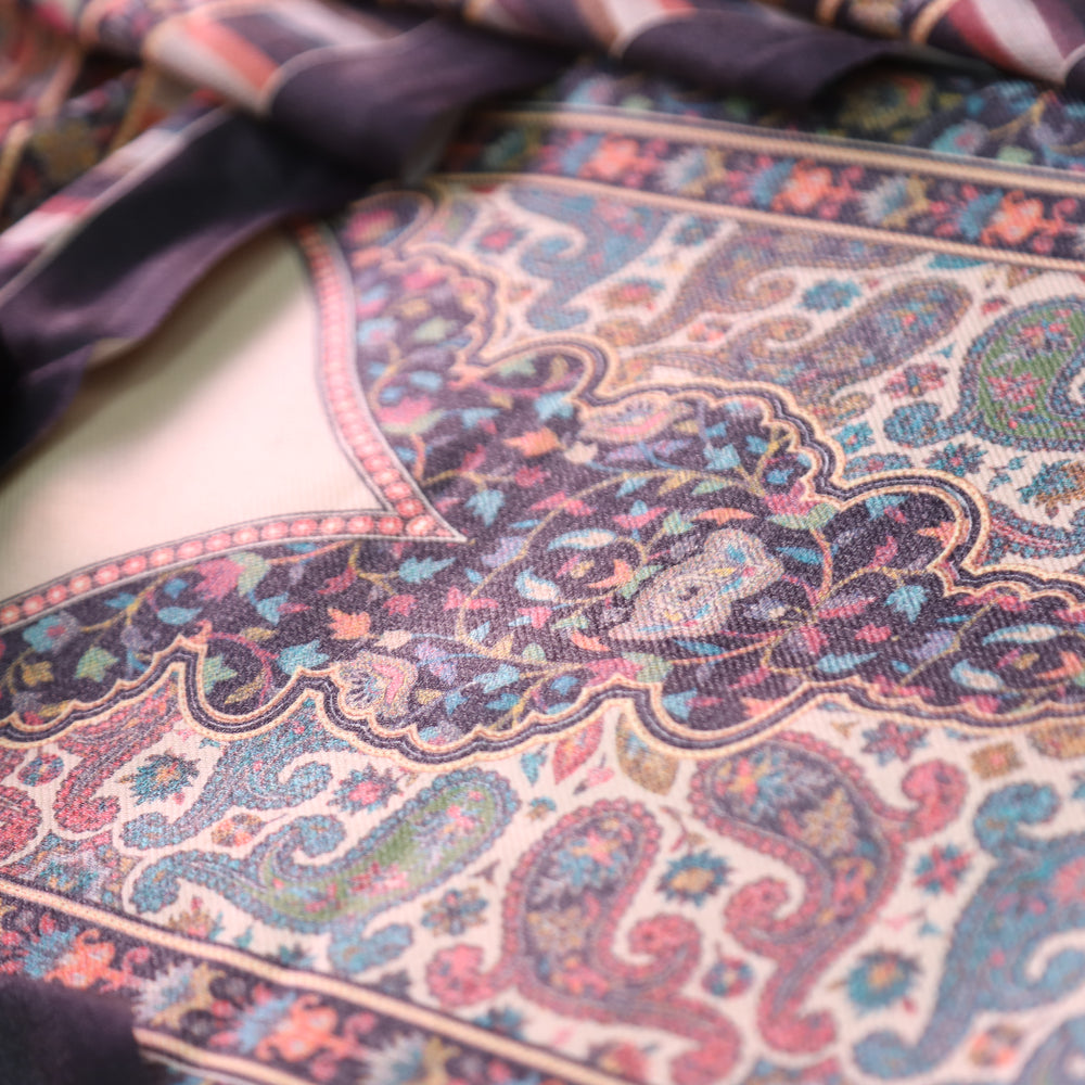 विशाखा Black Panel Style Digital Kashmiri Printed Semi Pashmina Winter Suit Set