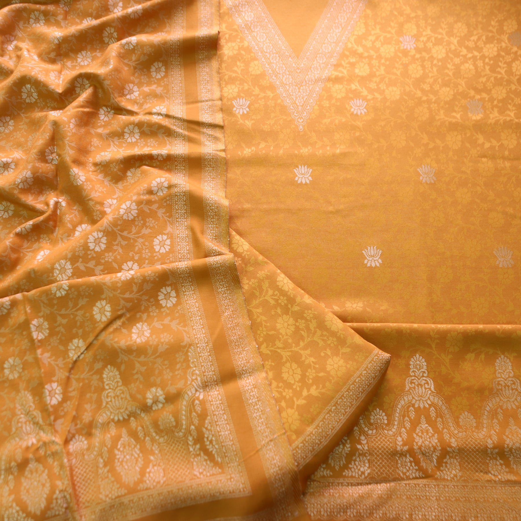अदिति Dijon Yellow V Neck All Over Zari Weaved in Semi Pashmina Winter Suit Set